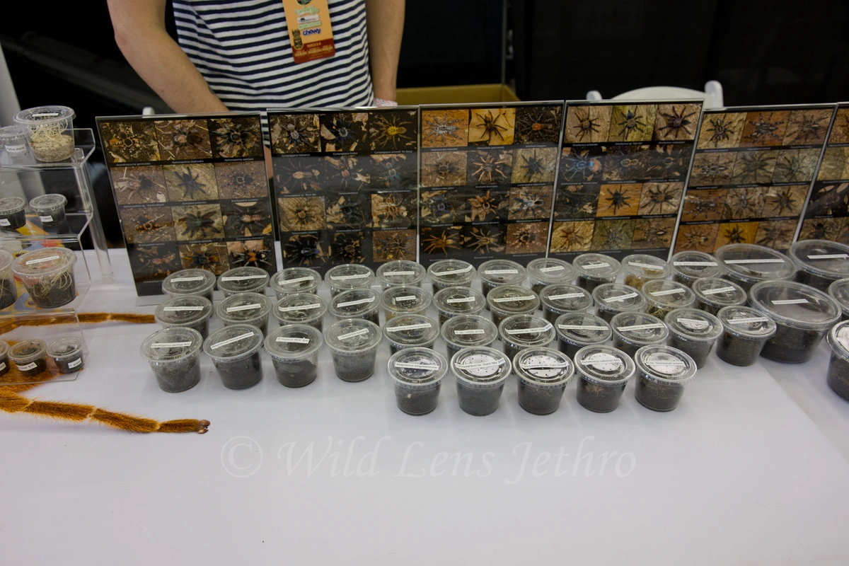 Outside of the heavy hitters, I saw a fantastic array of others including Carpet Pythons, Black-Headed Pythons, Green Tree Pythons, Kingsnakes, Panther Chameleons, Giant Leaf Tail Geckos, Poison Dart Frogs, Water Monitors, Ackie Monitors, Bearded Dragons, and Iguanas. There were even axolotls, jumping spiders, and Old World Tarantulas, plus a free petting zoo in the back with goats and prairie dogs for the kids.