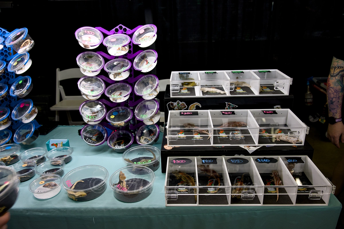 If you need supplies, you’re completely covered. You can find everything from custom PVC enclosures and glass tanks to live feeders, cork rounds, and bioactive decor. The only thing I found lacking was a strong variety of lighting; I was hunting for specific high-output UVB bulbs and came up empty-handed. Many vendors (like Zoo Med, Chewy, LLL Reptile, Timberline, DNA Southern Reptile Supply, and more) sold supplies. You can find nearly everything including PVC enclosures and glass tanks, all kinds of décor (grapevine branches, cork rounds, drift wood, marble water bowls, etc.), and all kinds of feed (powder gecko diets, bugs, live rodents, and frozen rodents). The only thing I found lacking was a strong variety of lighting; I was hunting for specific high-output UVB bulbs and came up empty-handed.